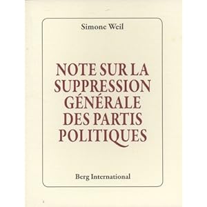 Simone Weil (1909-1943) est engagée dès 1927 dans le syndicalisme révolutionnaire. Elle rejoint le monde ouvrier en 1934-1935 pour vivre sa condition, soutient le Front populaire, participe à la guerre d’Espagne, rallie enfin la Résistance et meurt en Grande-Bretagne en laissant une masse d’écrits inédits dont sa Note sur la suppression générale des partis politiques. Pour que le peuple vive dans la justice et la vérité qui ne peuvent être qu’une, deux grandes conditions sont requises selon elle : l’absence de passion collective et la possibilité d’exprimer une pensée sur les problèmes fondamentaux de la vie publique. Or, les partis politiques comme les Églises s’opposent systématiquement à cette double exigence. Ayant un dogme, ils fonctionnent sur la base de la discipline et leur seul mobile réside dans leur propre développement. Autrement dit, ils sont « décerveleurs », d’où l’urgence de supprimer les partis qui enferment le peuple dans le danger manichéen du pour et du contre et qui l’empêchent de penser par lui-même.