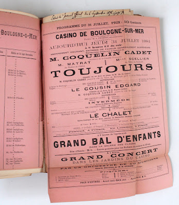 7) 10 programmes imprimés du Casino ou du Théâtre municipal de Boulogne-sur-Mer datant de 1884 à 1898 annonçant des spectacles où jouent Coquelin aîné, Coquelin cadet ou les deux, parfois en compagnie de Jean Coquelin,