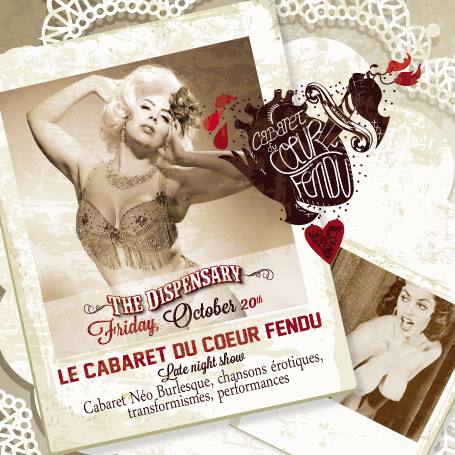 Ce soir, le 20 octobre 2017, Le cabaret du cœur fendu (chansons érotiquobscènes, performances, effeuillage burlesque) à partir de 21h au Dispensary à Toulouse…